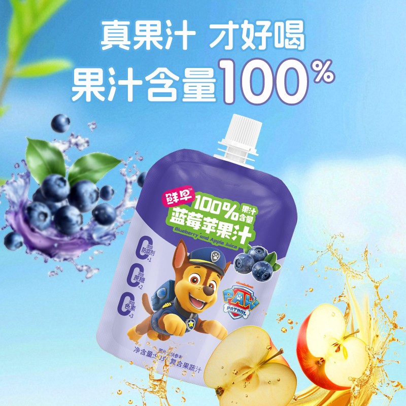 鲜早100%复合果汁(汪汪队)-90克(蓝莓苹果汁、枇杷雪梨汁】)