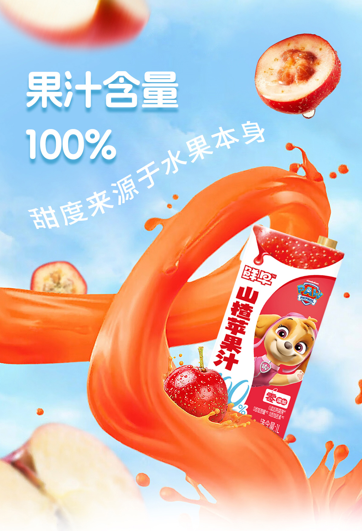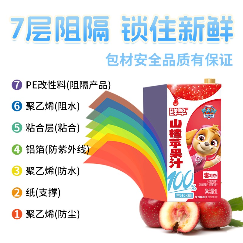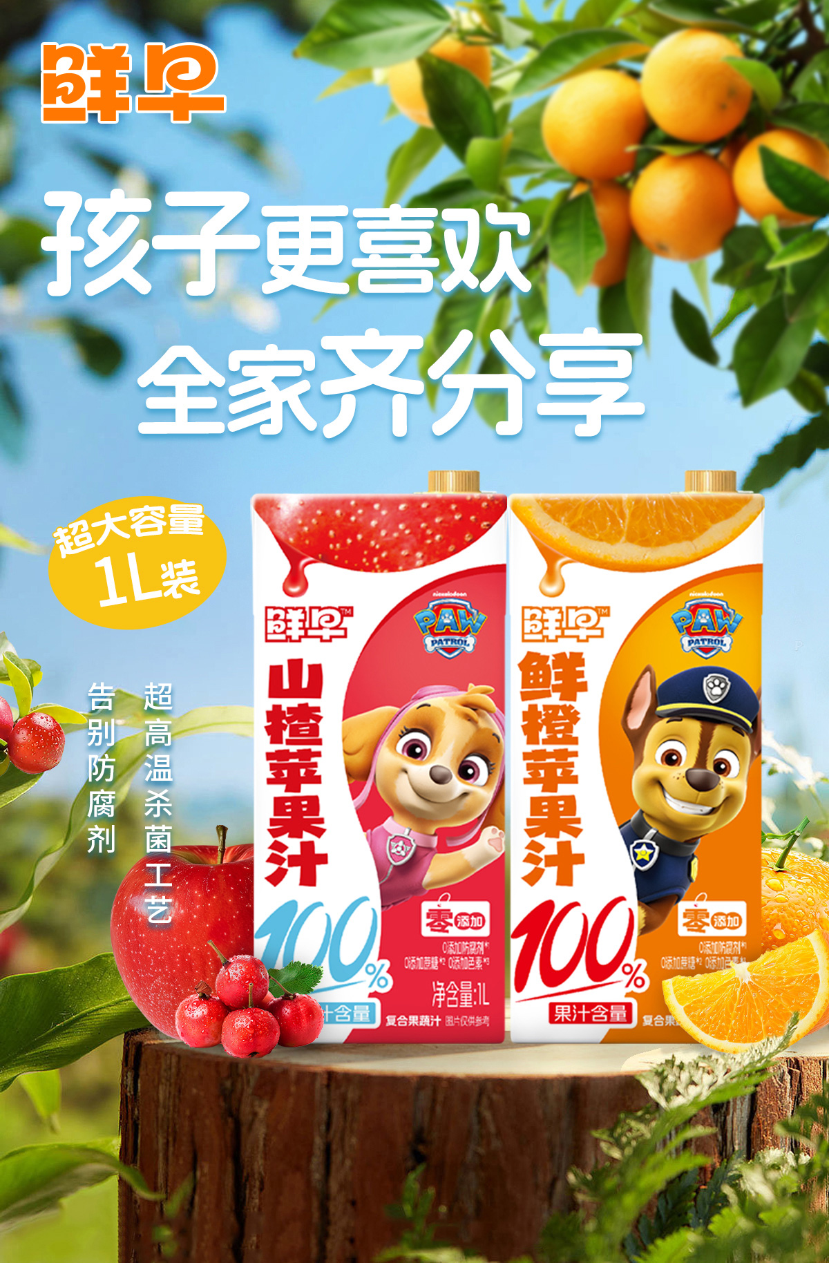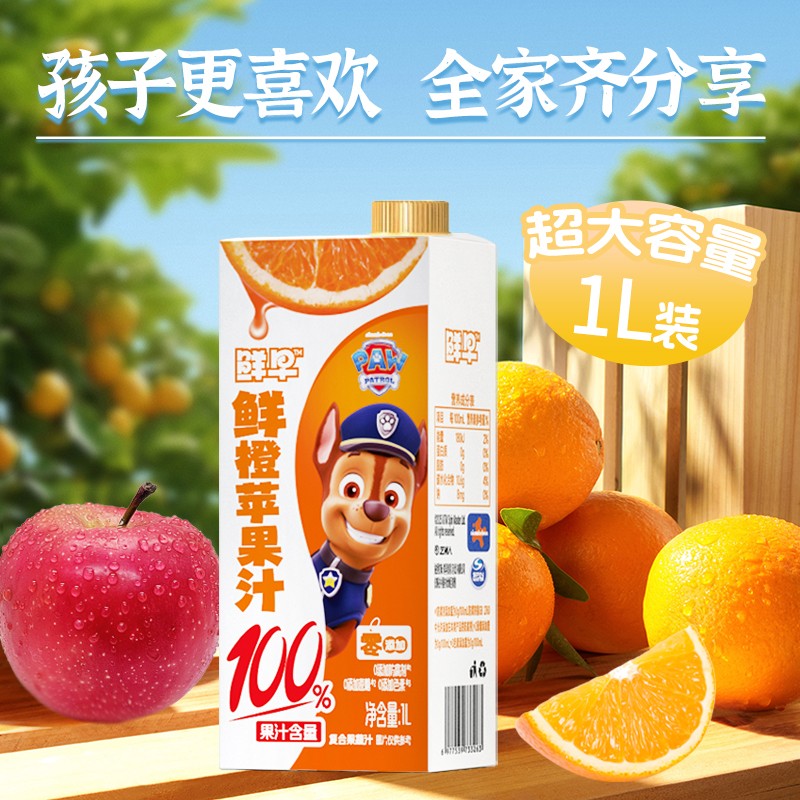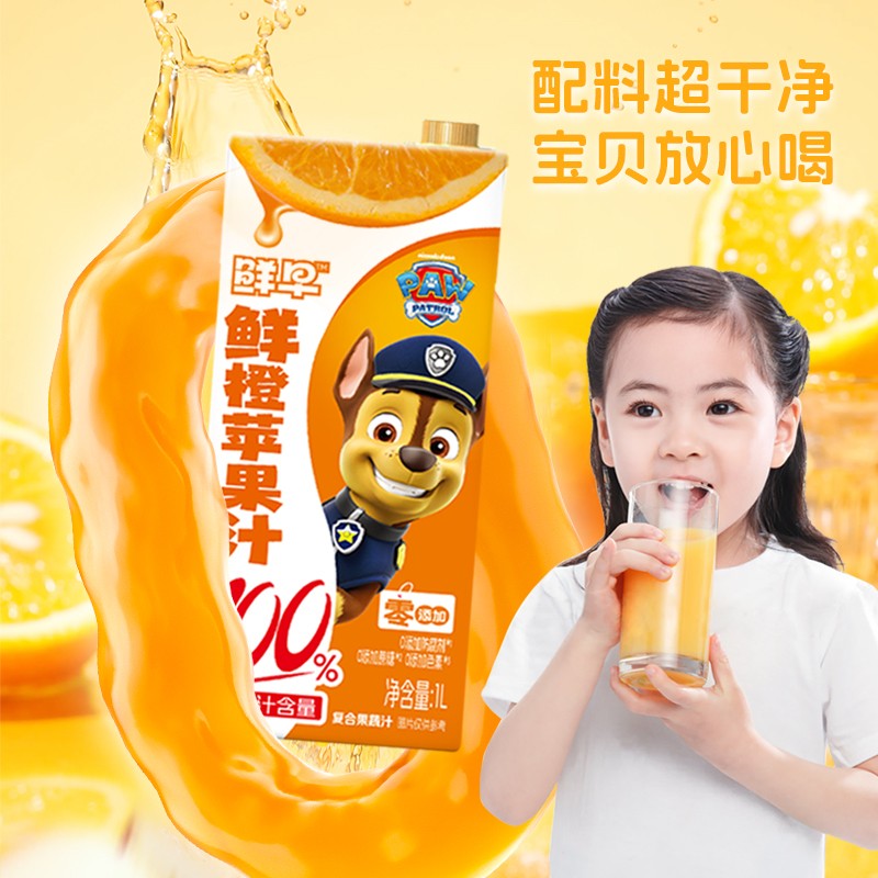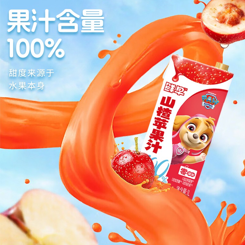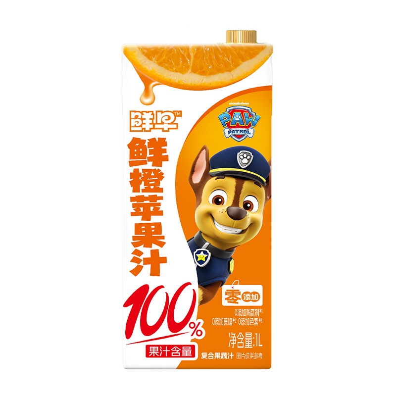 鲜早100%复合果汁(汪汪队)-1升(鲜橙苹果汁、山楂苹果汁)