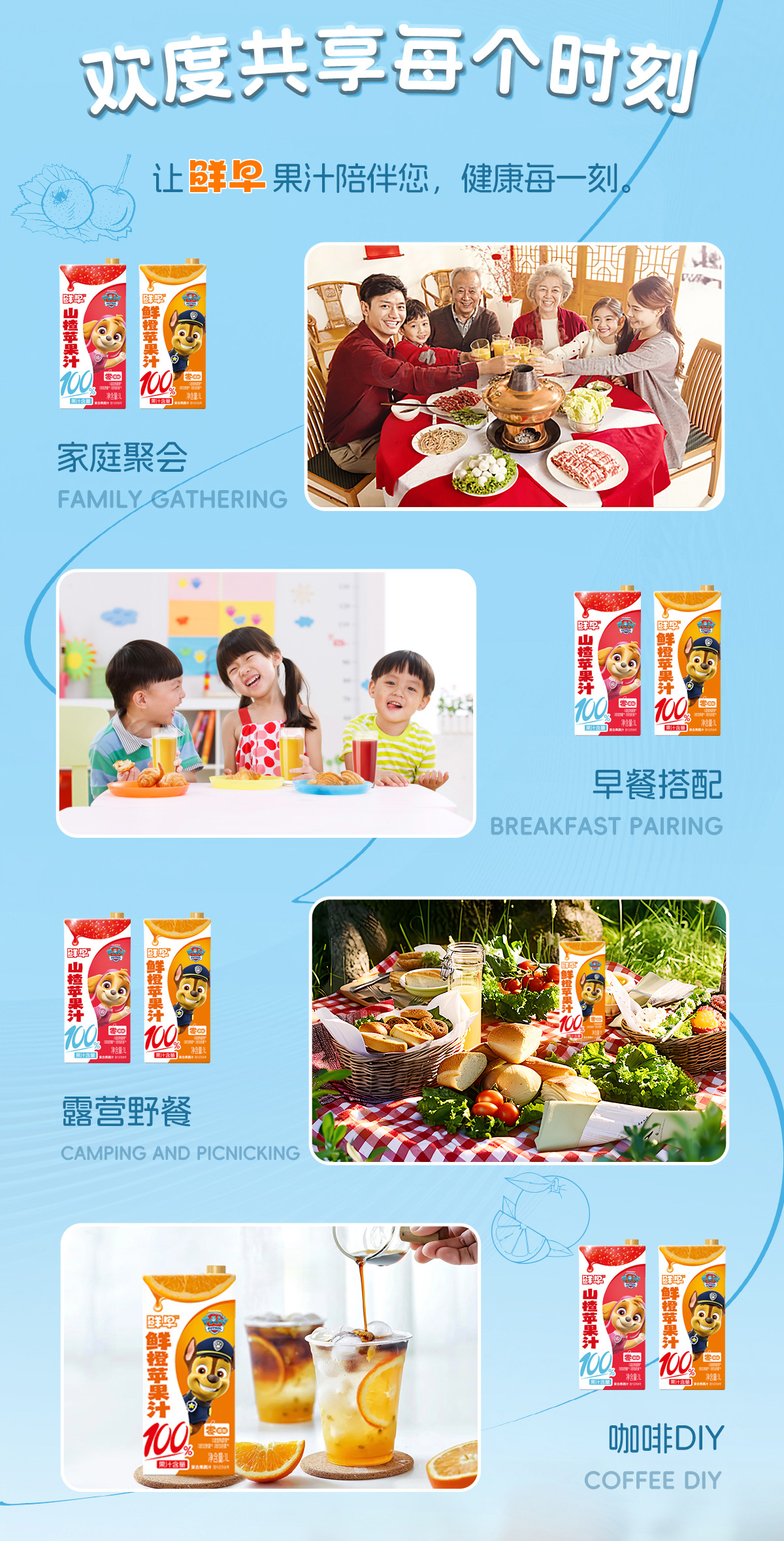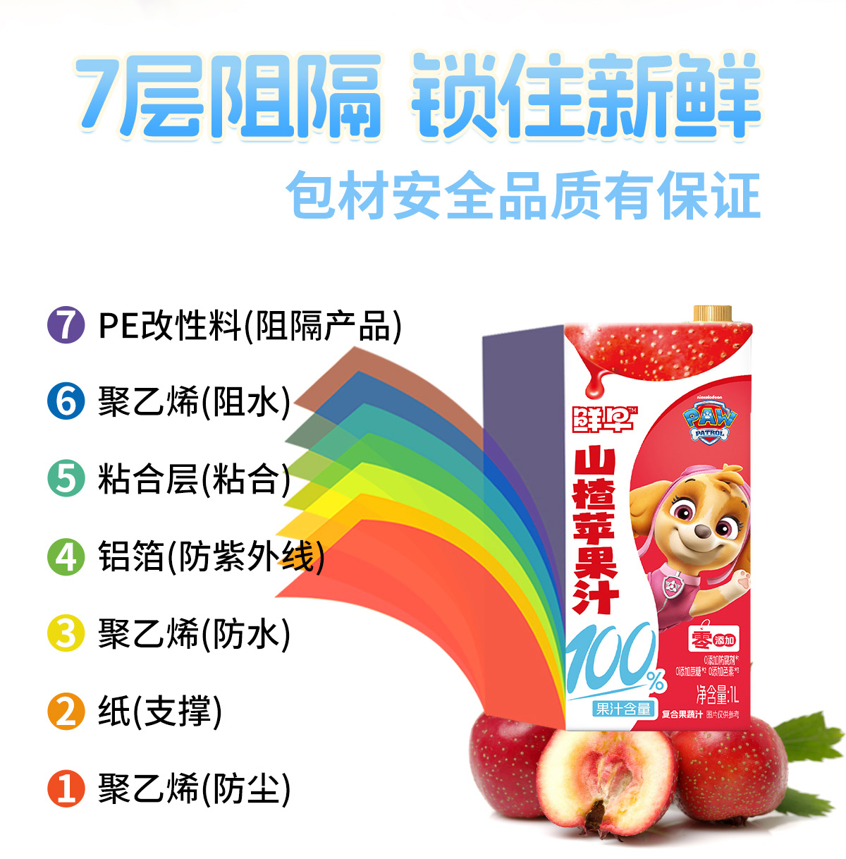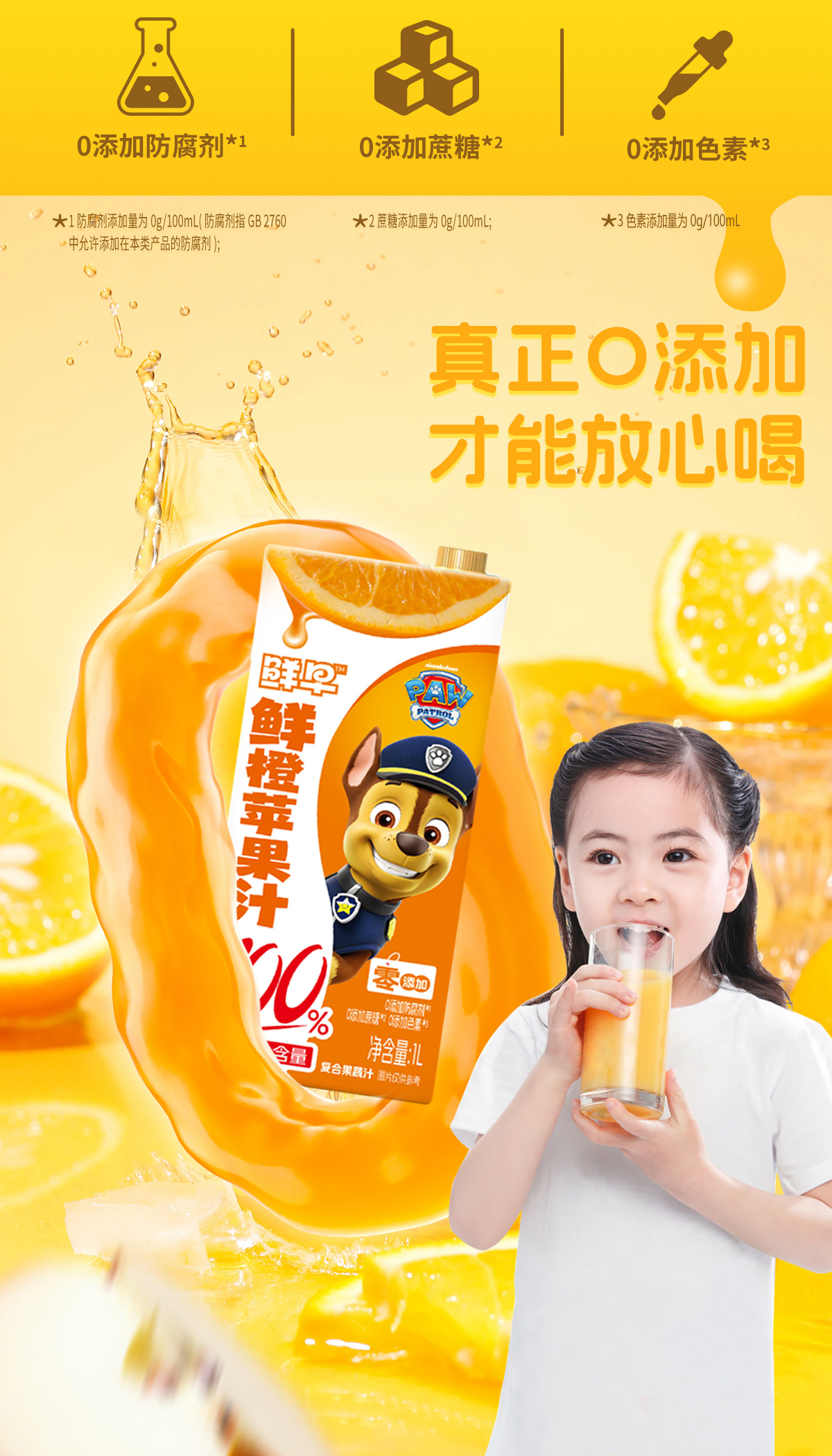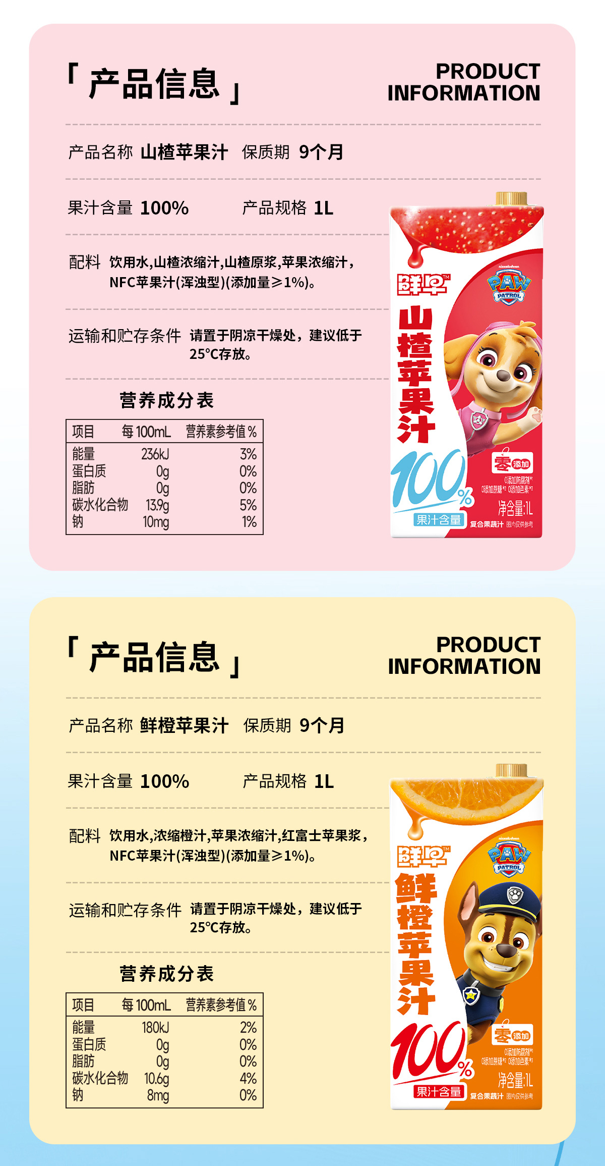 鲜早100%复合果汁(汪汪队)-1升(鲜橙苹果汁、山楂苹果汁)